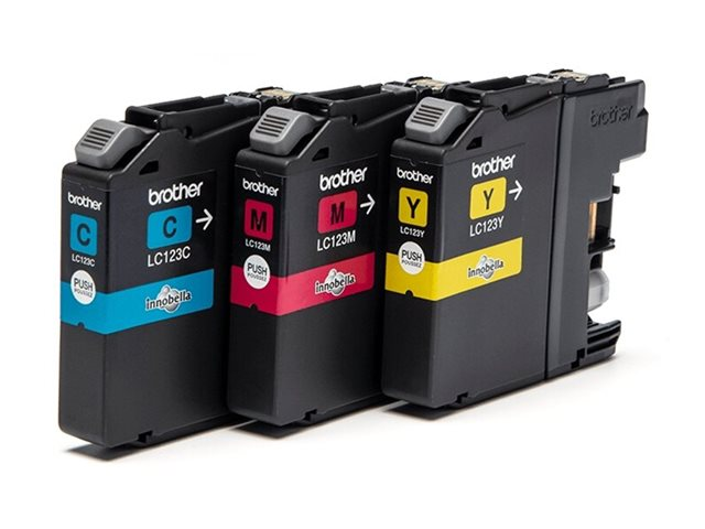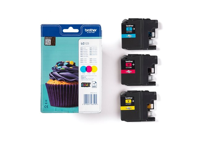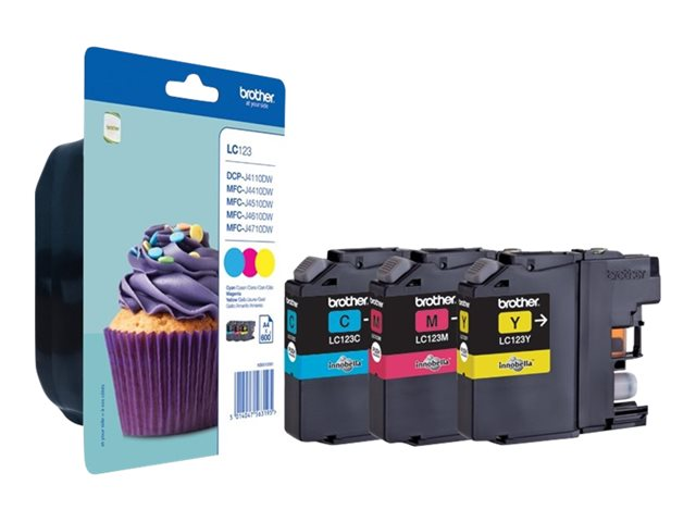 Brother LC123 RainbowPack - 3-pack - Lång livslängd - gul, cyan, magenta - original - blister med akustiskt / elektromagnetiskt alarm - bläckpatron - för Brother DCP-J132, J152, J172, J552, J752, MFC-J245, J470, J650, J6520, J6720, J6920, J870