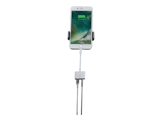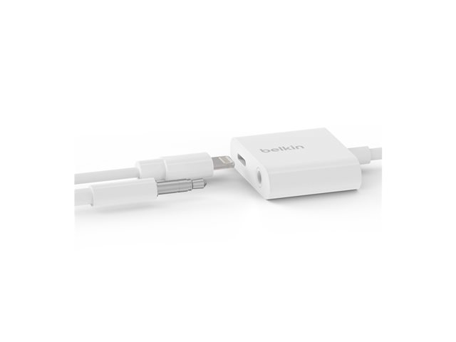 Belkin 3.5 mm Audio + Charge RockStar - Lightning- till hörlursjack/laddningsadapter - Lightning hane till Lightning, 4-poligt minijack hona - vit F8J212BTWHT