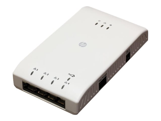 HP 517 Unified Walljack integrates GbE wired ports, and 802.11ac wireless connectivity into a low-profile design that can be quickly installed in a standard wall outlet box. It provides four GbE ports, a dual band 802.11a/b/g/n/ac wireless access point and a pass-through RJ-45 connection to support a range of services and connectivity options. One Ethernet port can be configured as an IEEE 802.3af-compliant PSE port for powering devices such as IP telephones. The HP 517 Unified Walljack requires a single Power over Ethernet (PoE) cable drop and provides wireless coverage for one or more rooms.
