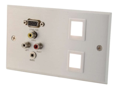 C2G RapidRun Single Gang Integrated HD15 + 3.5mm + RCA Audio/Video Wall Plate + 2 Keystones - Monteringsplatta - HD-15, RCA X 3, minihörlurskontakt, stereo 3,5 mm - borstad aluminium - 1-gang 87100