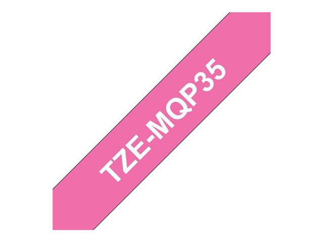 TZe-MQP35 12 mm vit på rosa etikettape är noggrant testad av Brother för att vara så hållbar och varaktig som möjligt. Etikettapen är laminerad för att säkerställa att dina etiketter håller länge. Tapen passar perfekt för all typ av märkning på kontoret, arbetsplatsen eller i hemmet. TZe-MQP35 laminerad tape har en matt yta vilket innebär att det inte blir blänk i etiketten vilket i sin tur kan leda till att texten blir svår att läsa. Brother P-touch laminerade etiketter har utvecklats för att hålla, även under extrema förhållanden. De tål solljus, kemikalier, nötning och nedsänkning i väta.